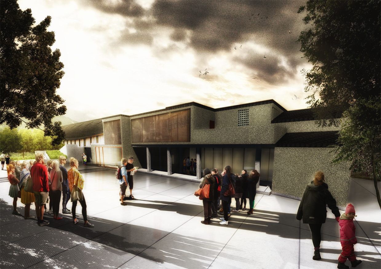 作為聚落的入口與居民日常生活的場域將活動引入基地,打開一連串的公共空間及廣場,並