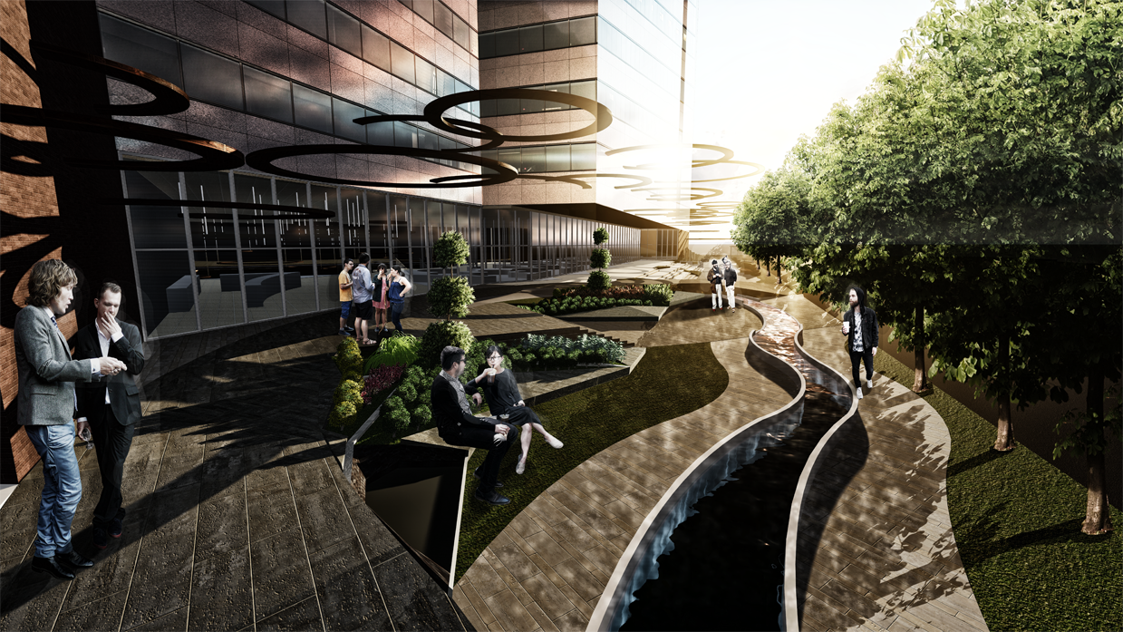 我們使用漣漪為意象, 以使用者的情緒與行為反應相處發展作為這次的主題, 辦公大樓