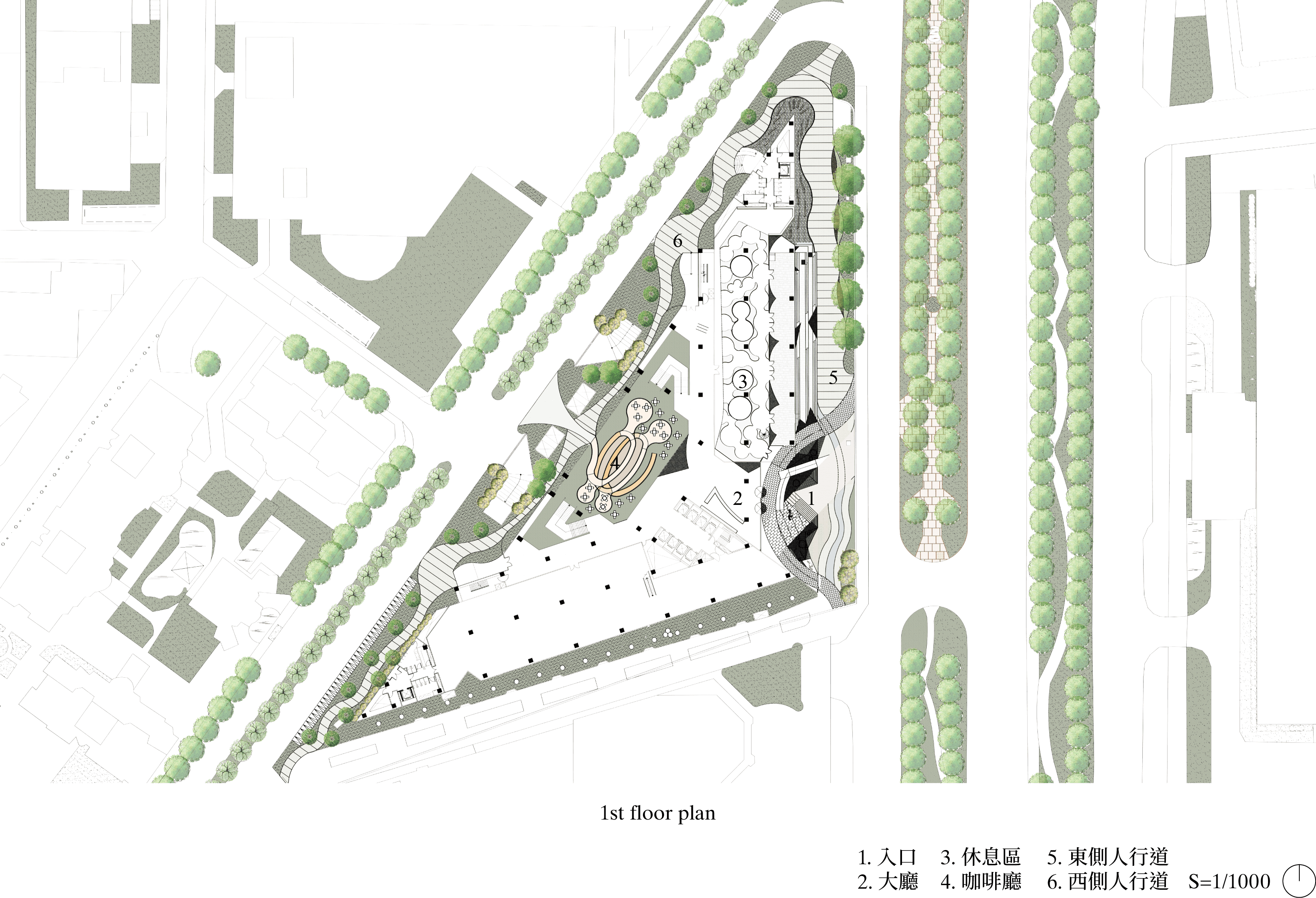 原本的主入口由於捷運開通的原因變得冷清, 也缺少殘障坡道, 重新規劃後, 除多出休